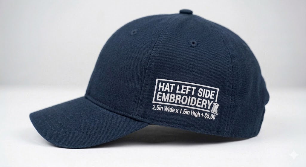 Hat Left Side - 2.5in Wide x 1.5in High + $5.00